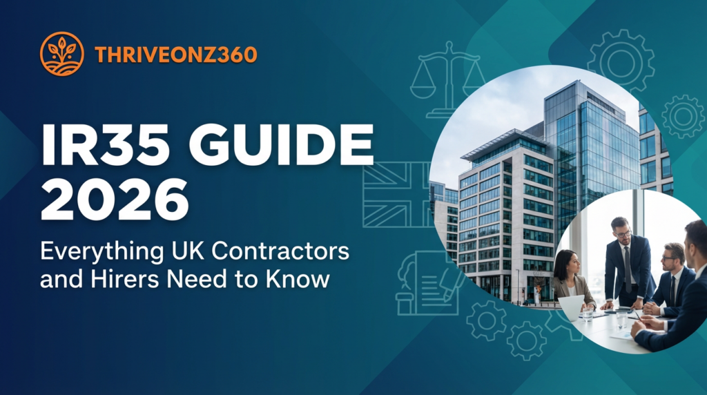 Last updated: February 2026. IR35 rules: Chapter 10, ITEPA 2003, as amended. Current private sector rules effective April 2021. Medium/large company thresholds: >£10.2M turnover, >£5.1M balance sheet, or 50+ employees. SDS penalty: £500 per missing statement (s61N). Personal liability provisions: s61T. CEST available at gov.uk/guidance/check-employment-status-for-tax. Qualifying earnings band and contribution rates current at publication. All financial examples are illustrative. Tax calculations approximate — depend on specific earnings, deductions, and HMRC interest rates at time of investigation. IR35 determinations are fact-specific; this guide is general information and does not constitute legal or tax advice. Seek advice from a qualified employment tax specialist for your specific circumstances. ThriveOnz360 accepts no liability for decisions made based on this guide.