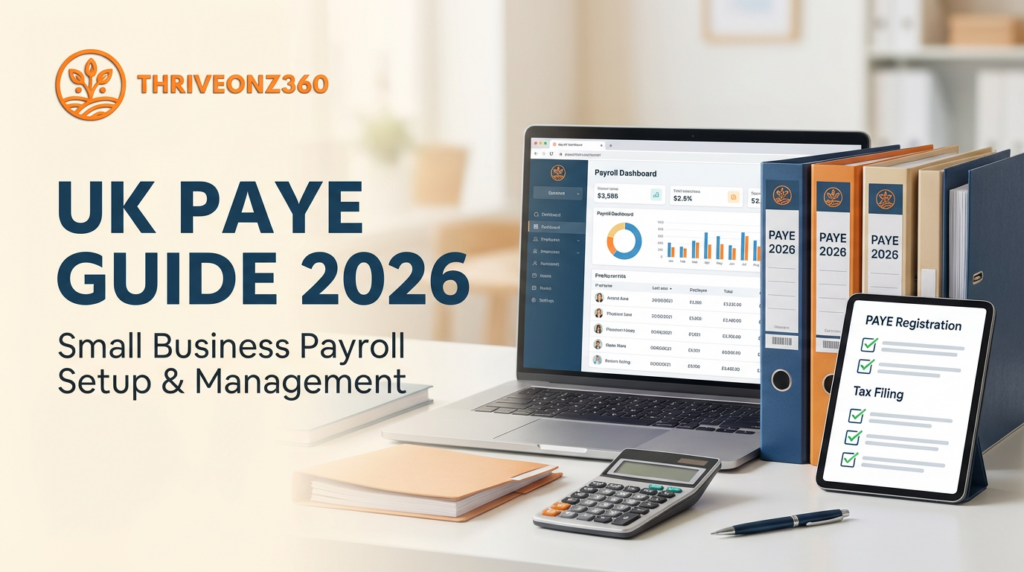ThriveOnz 360 Growth members: Xero 50% off 6 months + Buddy Punch 20% off 3 months + UK Payroll Calendar 2025/26, PAYE Setup Checklist, Tax Code Quick Reference, and Statutory Payment Calculator. Free to join.